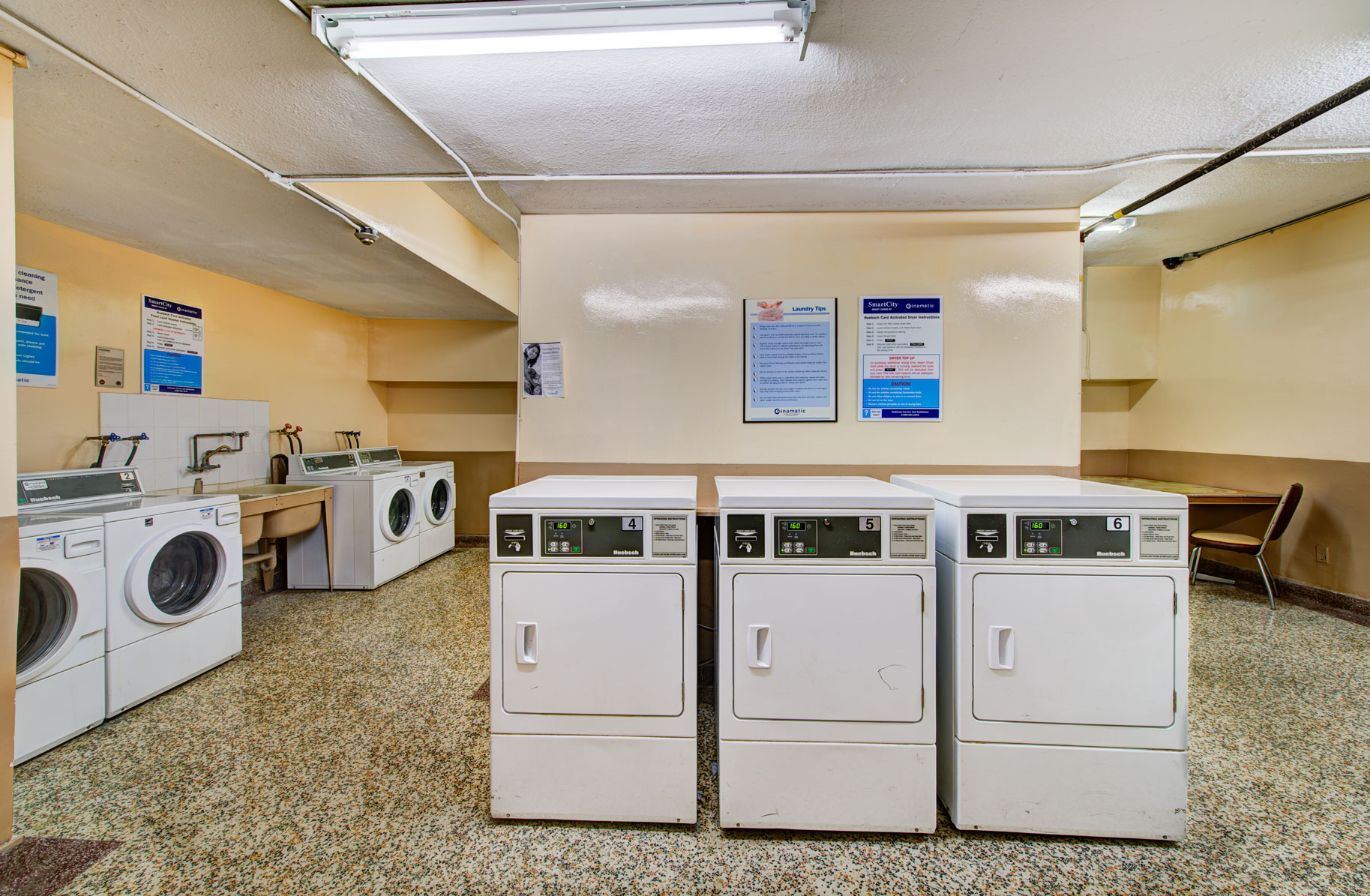 za to jest pralnia gdzie stoją pralki i suszarki i za opłatą można sobie zrobić pranie. Jak